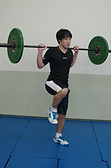 そして、速やかに脱出し、スプリットランジをします。スプリットランジとは、リズムよく大股で浅いランジを跳ねながら交互に行います。10~20回行って下さい。つま先はしっかり前に向けましょう。